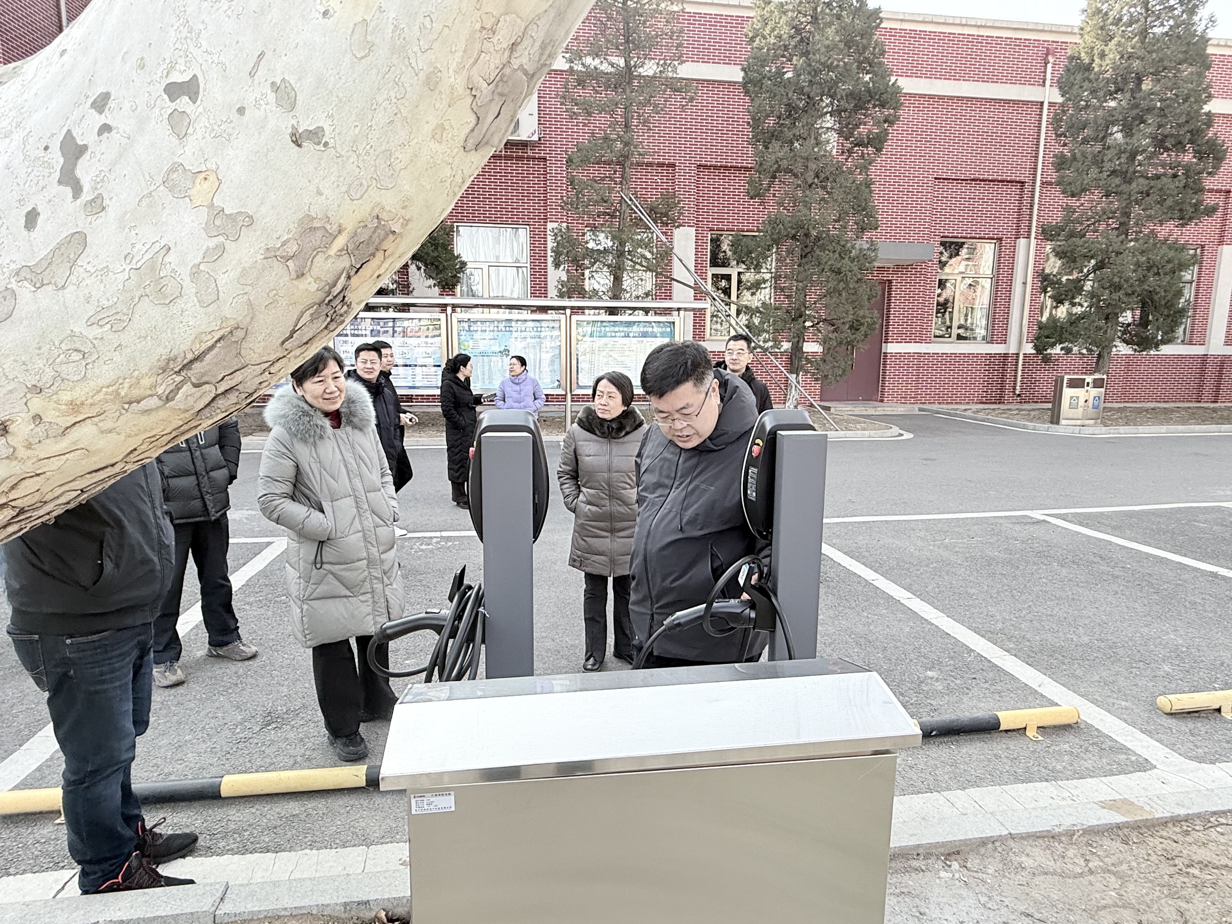 学院领导检查新增新能源汽车充电桩并强调要建立健全充电桩使用管理制度,加强日常巡检和维护,同时积极探索智能化管理新模式,为师生提供更加便捷、高效的服务。