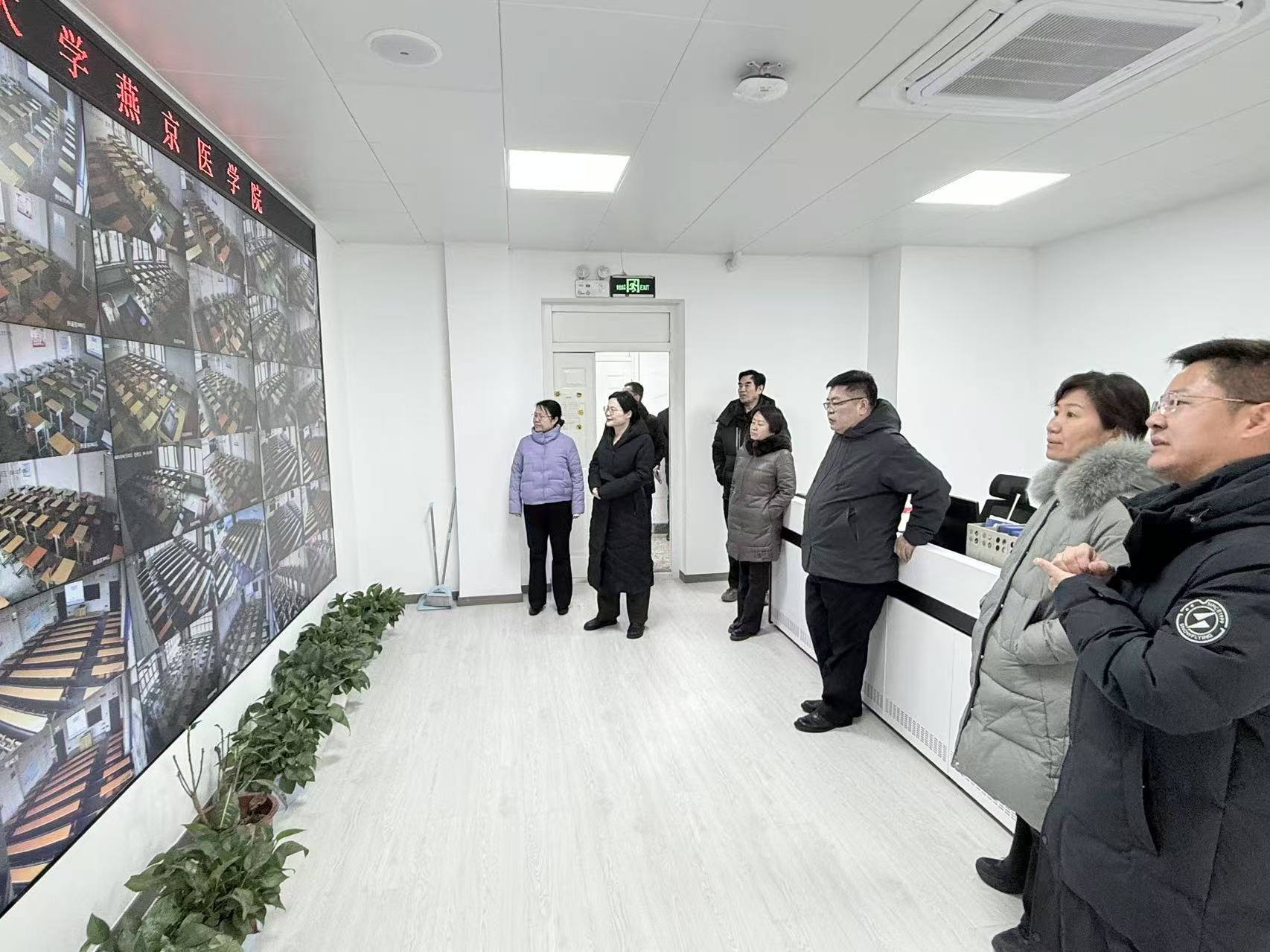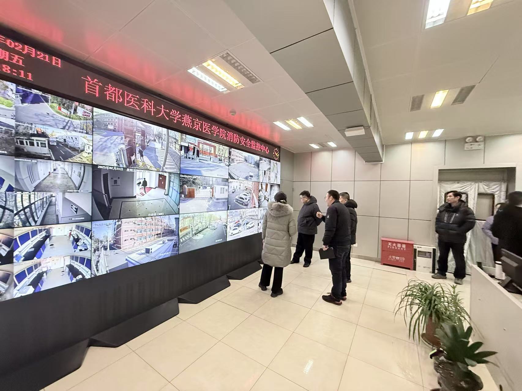 学院领导在消防安全监控中心查看了各点位的安全情况。