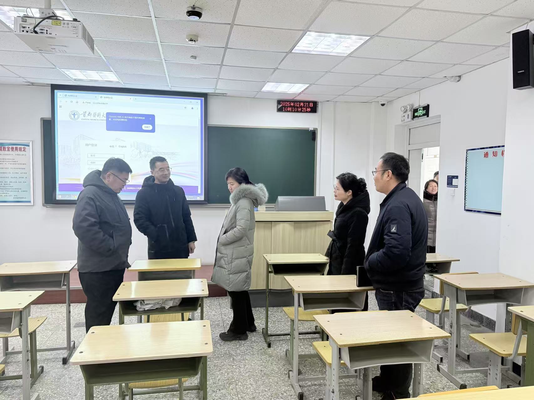 在学生教室、教室管理中心监控室,学院领导全面检查了教室安全运行状况,详细了解了多媒体教学设备、照明系统及空调设施的运行情况,并就发现的问题提出针对性改进意见,确保新学期开学前所有教学设备均能正常投入使用,为师生营造安全、舒适的学习环境。