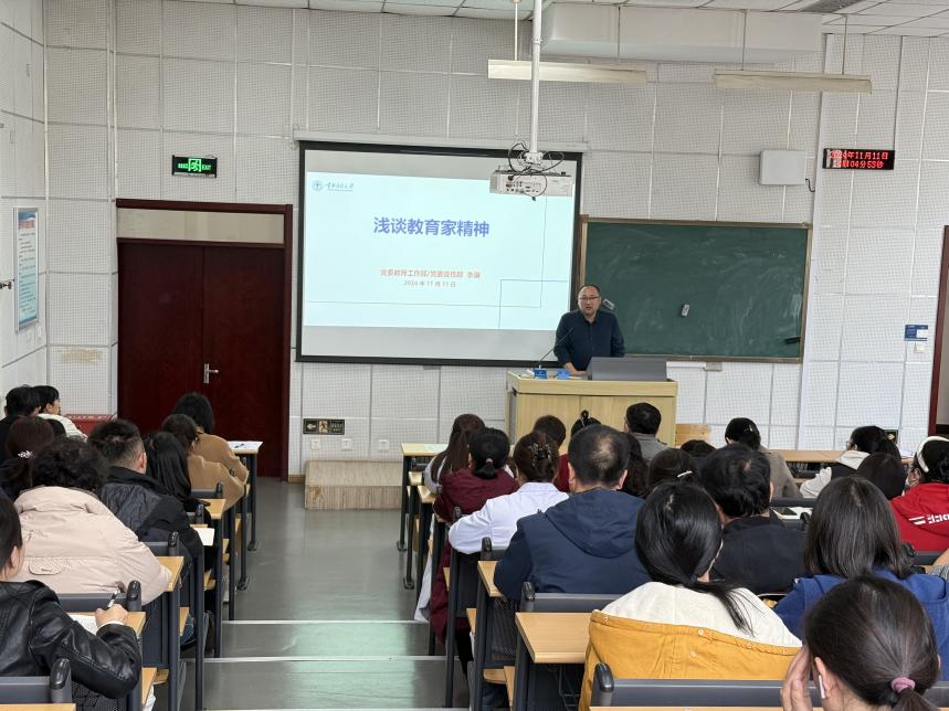 11月11日,为深入学习贯彻习近平新时代中国特色社会主义思想,大力弘扬教育家精神,进一步加强学院师德师风建设,以教育家精神引领广大教师做好立德树人工作,学院特邀学校党委教师工作部副部长、宣传部副部长李骥来学院举办了题为“浅谈教育家精神”的专题讲座。学院全体领导及100余名教师代表聆听了讲座。此次讲座拉开了学院2024年师德主题教育活动周的帷幕。