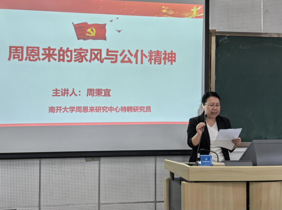 一幅幅珍贵的历史照片,一个个朴实无华的故事,带领大家重温了周总理修身齐家的优良风范,展现了周总理清正廉洁和对国家、人民的深厚情感,周总理严谨的家风,严于律己,公私分明,从不搞特殊化,也绝不允许家人搞特殊的崇高品德和人格魅力深深打动着在场师生,让大家深刻感受到了一代伟人、大国总理、伟大的共产主义战士始终严于律己、全心全意为人民服务的公仆精神。