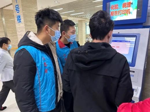 学生耐心、周到的服务,也得到了患者的好评。在门诊服务期间,经常听到患者对他们的感谢之声,夸赞这帮小伙子有责任心——“找不到的地方就带我们过去,搞不懂的机器就帮我们操作。对我们老年人非常有耐心。”