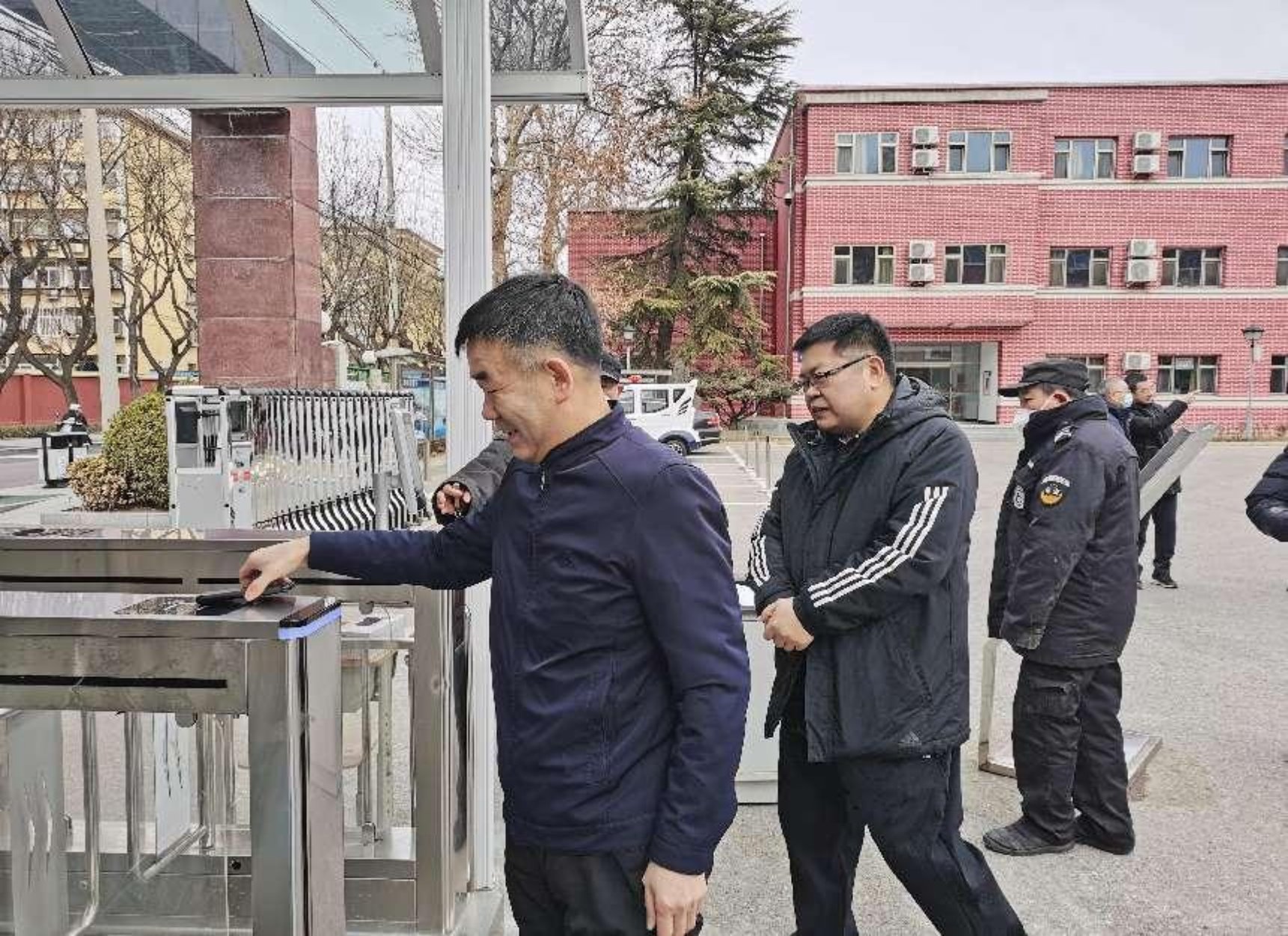 吴兵副校长检查学院大门刷卡闸机运行情况