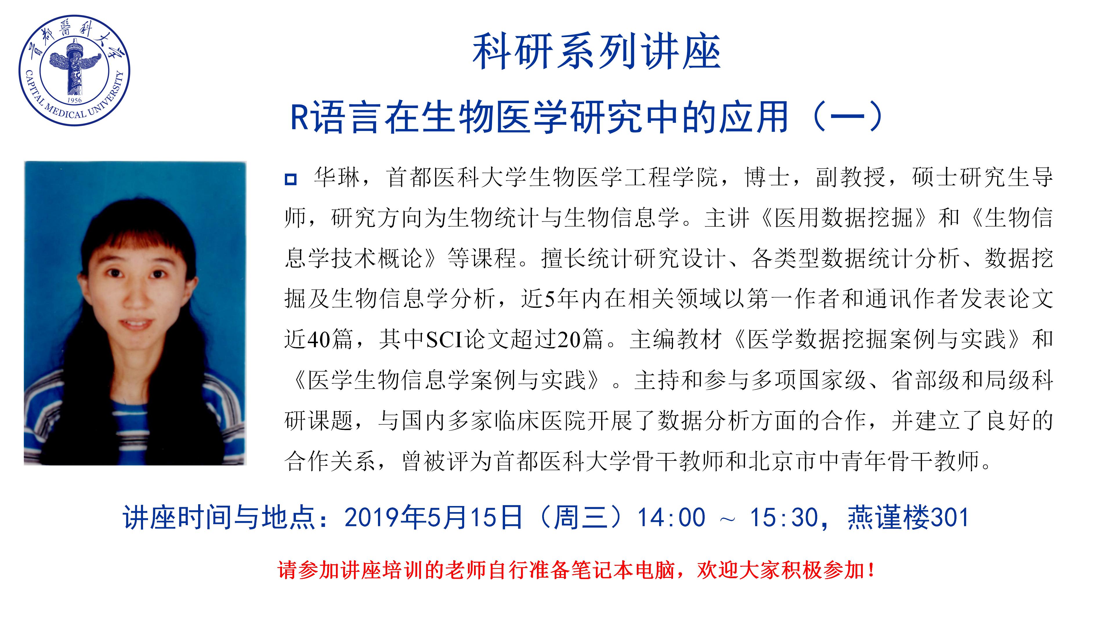 华琳副教授R语言在生物医学研究中的应用(一)讲座的通知