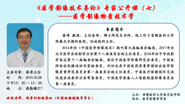 蒋涛 教授《医学影像技术导论》专家公开课(七)的通知