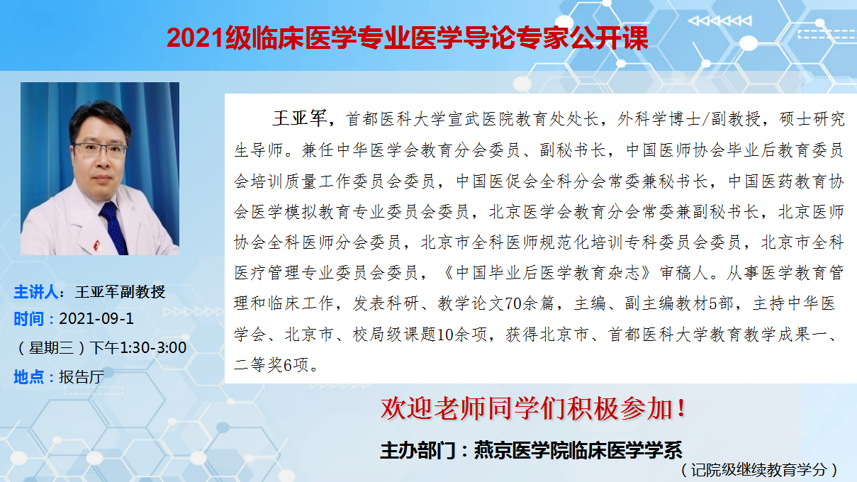 关于2021级临床医学专业医学导论专家公开课的通知