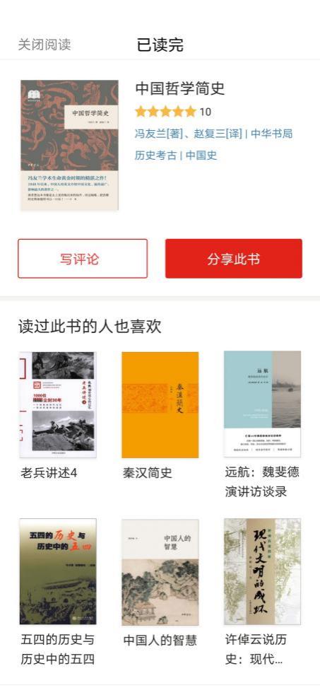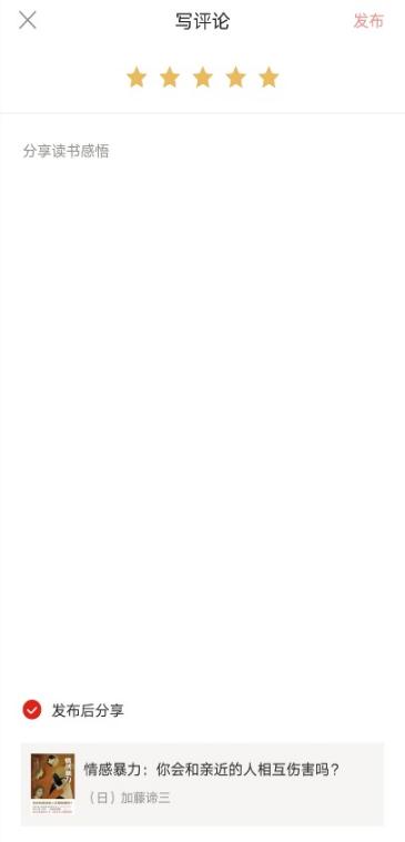 一本书读完后,点击“写评论”即可发表书评,所有书评可在“圈子”页面查看和参与互动留言、点赞。